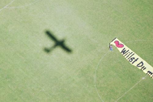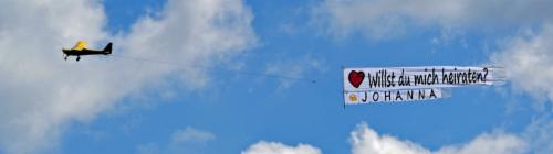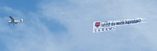 Was für eine unglaubliche Überraschung! Stell Dir vor, du bist mit deinem Schatz an einem besonderen Ort, einer Veranstaltung, bei einem Picknick oder Ihr sitzt gemütlich am Gipfel eines Berges und ein Flugzeug mit einem großen Flugzeugbanner mit der Aufschrift „Willst du mich heiraten?“ fliegt an Euch vorbei!