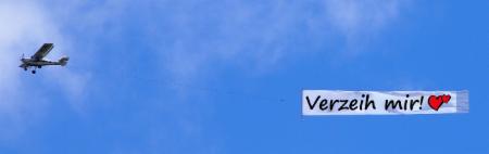 Das Flugzeugbanner "Verzeih mir!" kreist über den von dir gewählten Ort und unterstützt dich bei deiner Entschuldigung!